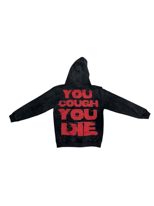 Black Denim Washed “YOU COUGH YOU DIE” Hoodie